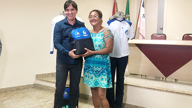 Foram entregues mais de 150 kits de uniforme com camisas manga curta, comprida, calça jeans, tênis, chapéu, mochila, squeezer, protetor labial e protetor solar.