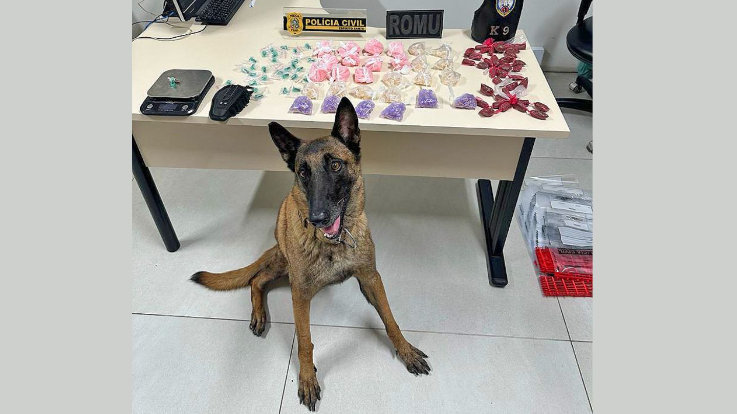 No local foram encontradas 332 pedras de crack, 153 pinos de cocaína, 47 buchas de maconha, 28 pedaços de haxixe, uma moto com restrição de furto e roubo, dois coldres, uma balança de precisão, um aparelho celular e R$ 126 em espécie.