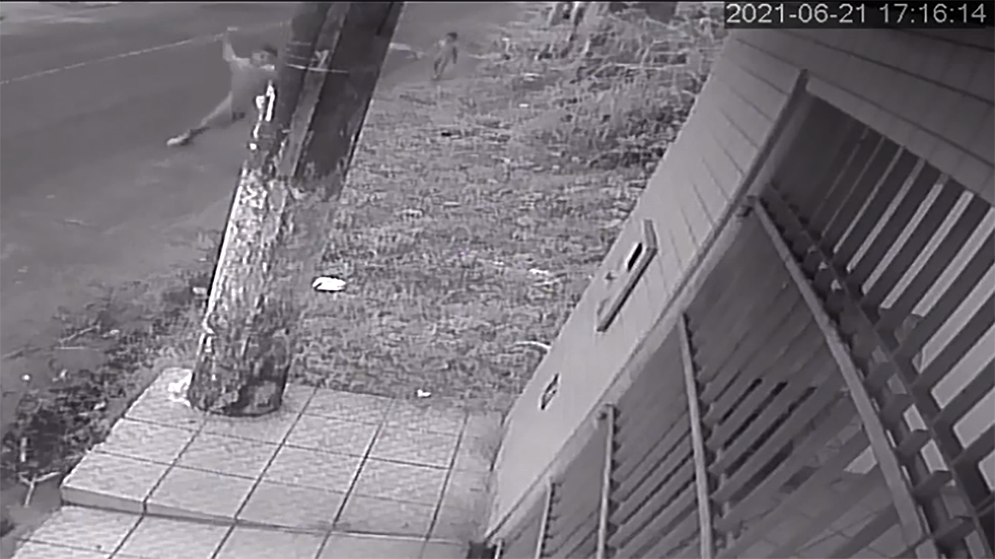 Veja o vídeo do momento em que o homem atira a pedra no gatinho: