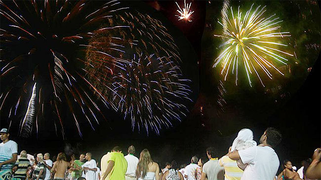Contagem regressiva! Este ano, haverá fogos de artifícios em cinco localidades. Ao todo, serão 15 minutos de fogos, em média, em cada uma delas.