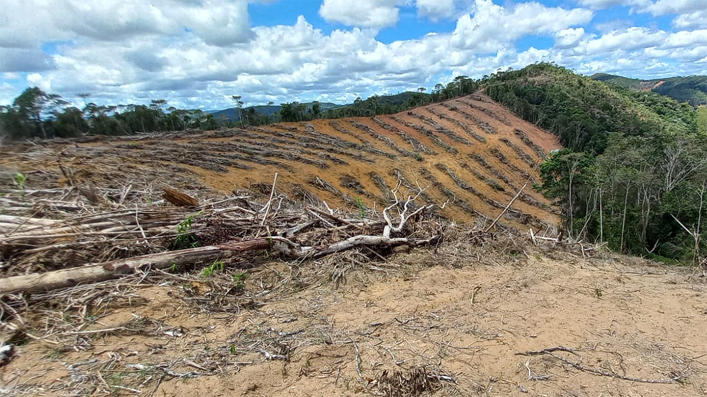 Cinco campos de futebol: esse é o tamanho aproximado de uma área que foi desmatada de forma ilegal, nessa quinta-feira (23), na localidade de Rio Triunfo, em Santa Maria de Jetibá. Uma equipe do Instituto de Defesa Agropecuária e Florestal do Espírito Santo (Idaf) esteve no local, com apoio da Polícia Militar Ambiental, para impedir o avanço da supressão de vegetação, identificada durante fiscalização de rotina.