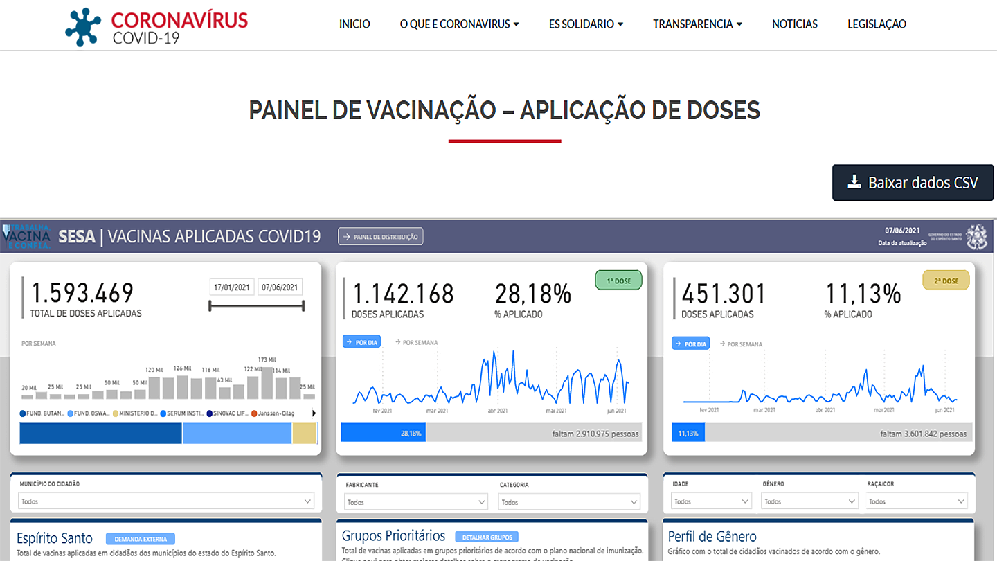 O Painel – que conta com a tecnologia de Business Intelligence (BI) – pode ser acessado no endereço  https://coronavirus.es.gov.br/painel-vacinacao-aplicacao. Com a nova ferramenta, ficou mais fácil para o cidadão exercer o controle social e acompanhar a vacinação no seu município.