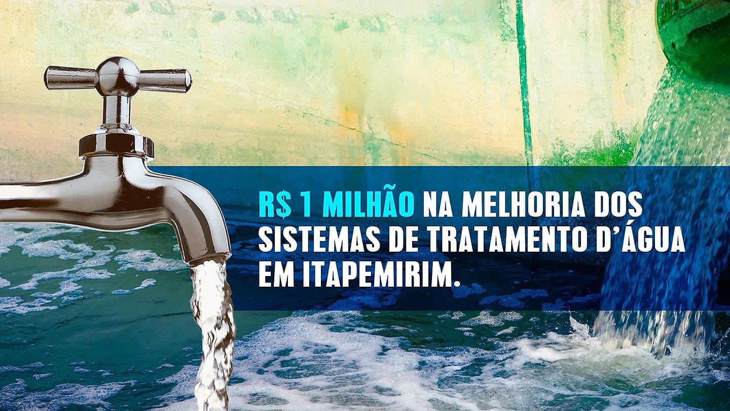 Itapemirim investe R$ 1 milhão na ampliação da capacidade de fornecimento de água tratada para a população do município. Os recursos serão destinados na melhoria e implantação do sistema de decantação da Estação de Tratamento de Água (ETA), no Centro (Vila) e no Gomes, além da ampliação das redes de abastecimento de água, em Itaipava.