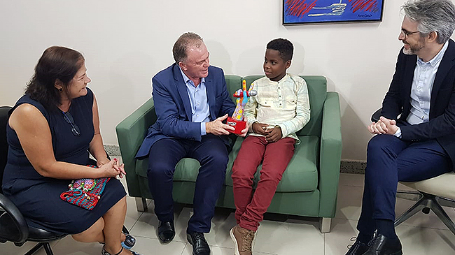 “O Jeremias rompeu barreiras ao mostrar que projetos sociais [Projeto Legal da Rede de Atendimento Integrado a Criança e ao Adolescente (Aica), do bairro Central Carapina, na Serra] como estes dão resultados. Nossa Faculdade de Música está à disposição do Jeremias e também para uma parceria com o projeto”, ofereceu. Também participaram do encontro, a primeira-dama do Estado, Maria Virginia Casagrande, e o diretor geral da Fames, Fabiano Araújo Costa.