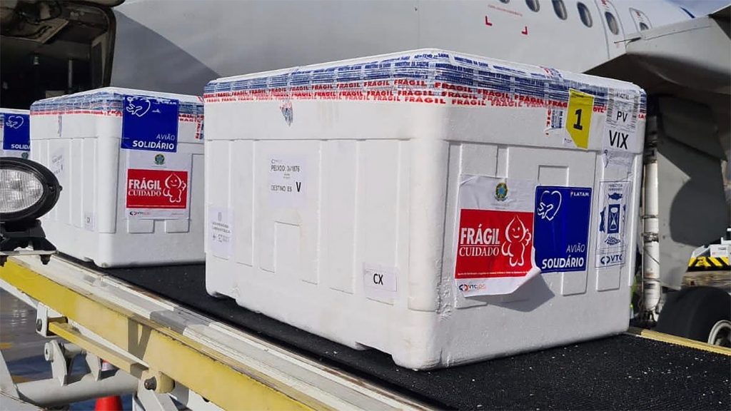 Mais uma remessa de doses de vacinas contra o novo Coronavírus (Covid-19) chegou ao Espírito Santo nesta sexta-feira (06) e sábado (07). Ao todo, o Ministério da Saúde encaminhou 150.420 doses, sendo essa a segunda entrega realizada esta semana.