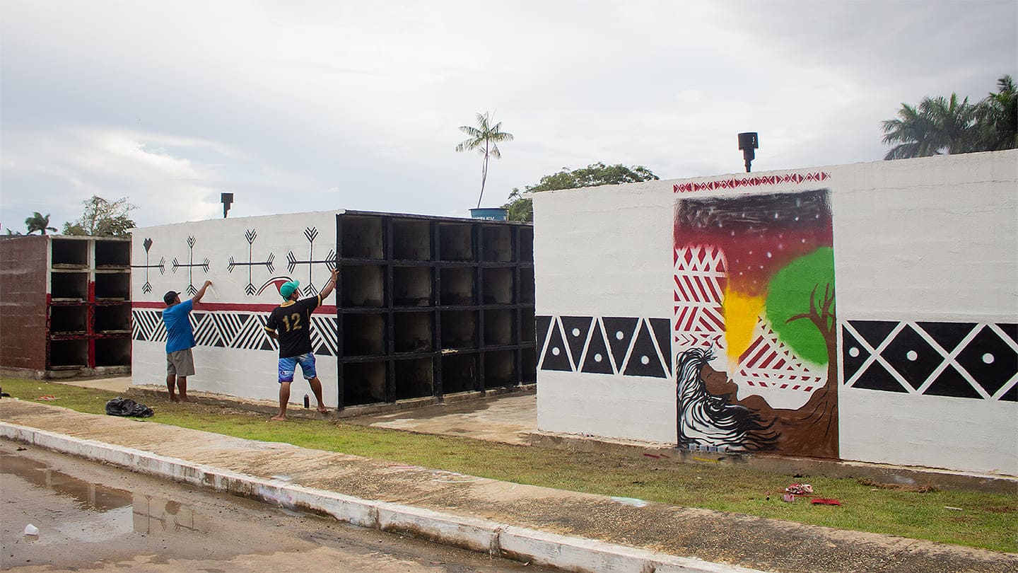 Thais Kokama, artista e ativista de 28 anos que idealizou o mural pintado por Chermie Ferreira, destaca que o cemitério indígena representa ainda a inclusão dessa população no processo de urbanização da cidade. “Estamos na cidade e continuamos carregando nossos traços e nossa cultura, sem deixar de ser quem nós somos. Agora, temos um local para repousar a nossa matéria”, expressou.