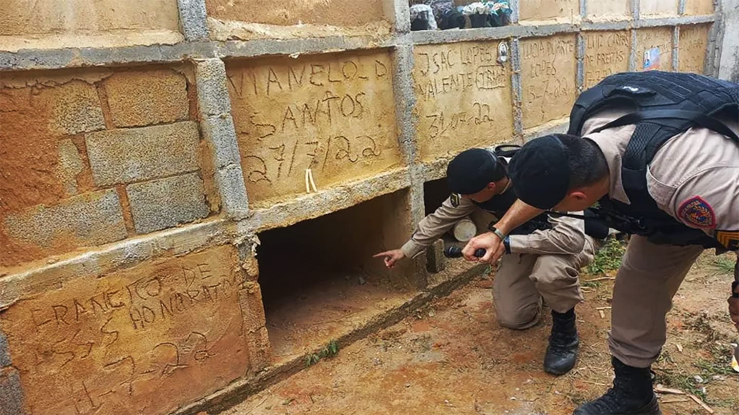 O coveiro, que tinha acabado de chegar para trabalhar, ao perceber que a estrutura estava fechada com tijolos e cimento fresco, entrou em contato com a Polícia Militar (PM).