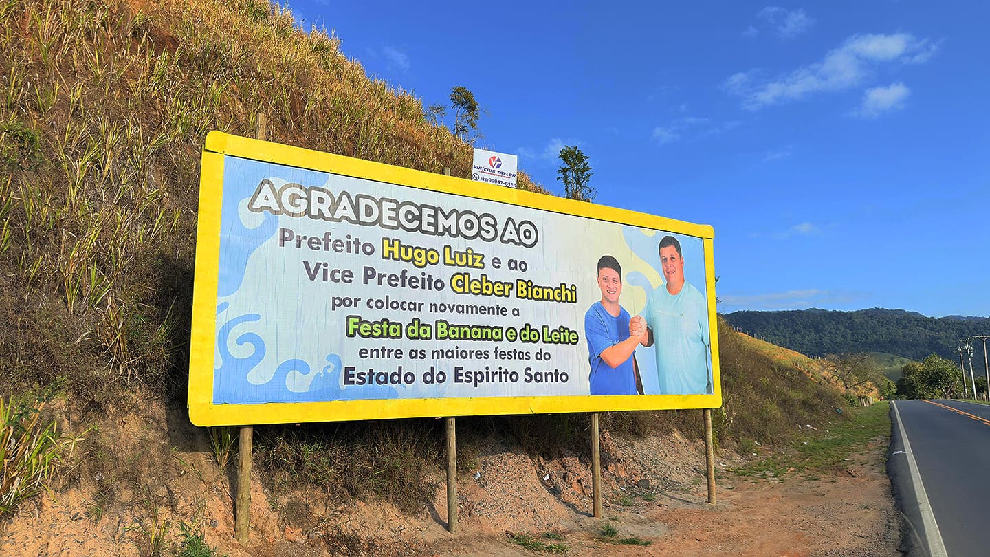 Após o sucesso da 50ª Festa da Banana e do Leite, realizada no último fim de semana em Alfredo Chaves, um grupo de moradores tomou a iniciativa de confeccionar e instalar, por conta própria, um outdoor na entrada da cidade. O gesto foi uma forma de agradecer ao prefeito Hugo Luiz e ao vice-prefeito Cleber Bianchi.