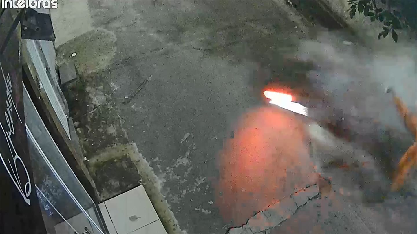 As imagens, que circulam por aplicativos de mensagens, mostram o momento exato em que a vítima perde o controle da moto e colide violentamente contra um muro. O impacto foi tão forte que não houve tempo para socorro.