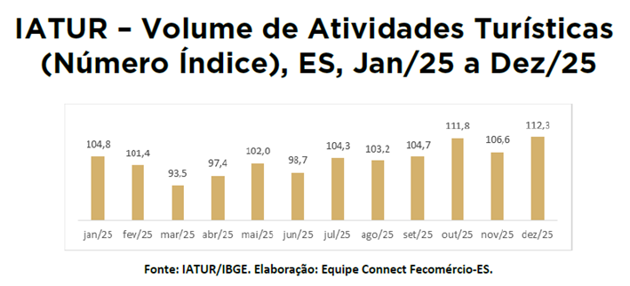 “Os dados mostram que o turismo capixaba ganhou tração ao longo do ano e fechou dezembro em um patamar historicamente elevado. Esse resultado reflete tanto a recuperação do setor quanto a consolidação de uma agenda mais ativa de eventos, lazer e turismo no estado”, explicou André Spalenza, coordenador do Observatório do Comércio do Connect Fecomércio-ES.