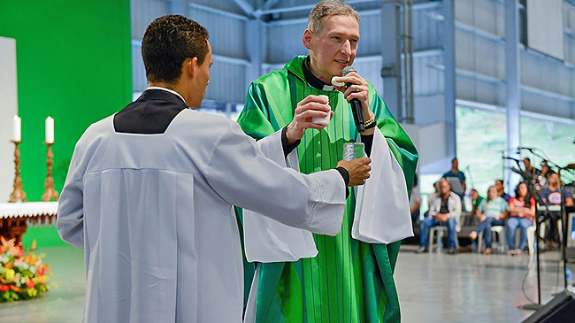 A missa estava sendo realizada em Cachoeira Paulista (SP) neste domingo (14) e era o encerramento do acampamento ‘Por Hoje Não’ (PHN), que acontecia às 14:50h. Cerca de 50 mil pessoas presenciaram o ato.