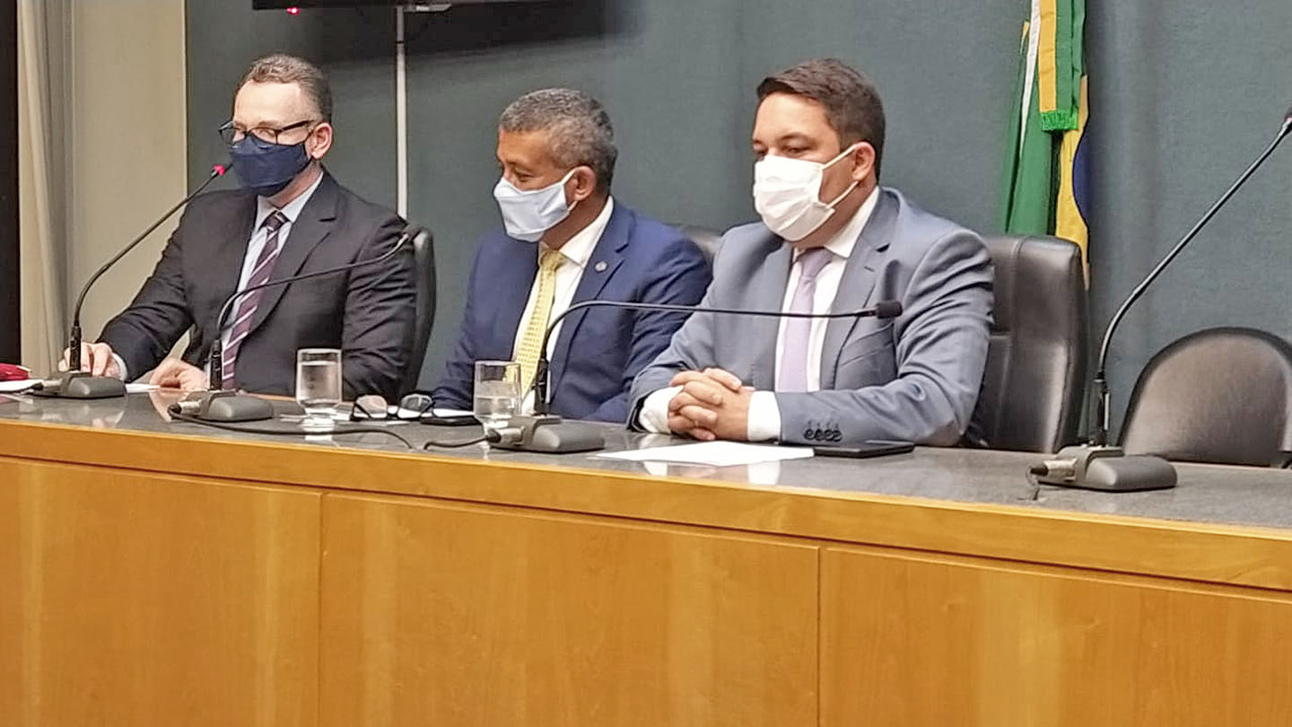 Participam da audiência: o secretário de Estado da Educação, Vitor de Angelo, o subsecretário de Estado de Planejamento e Transparência da Saúde, Tadeu Marino, os diretores do Sindiupes Gean Carlos de Jesus, Ildebrando Paranhos e Noemia Simonassi, além dos deputados anfitriões.