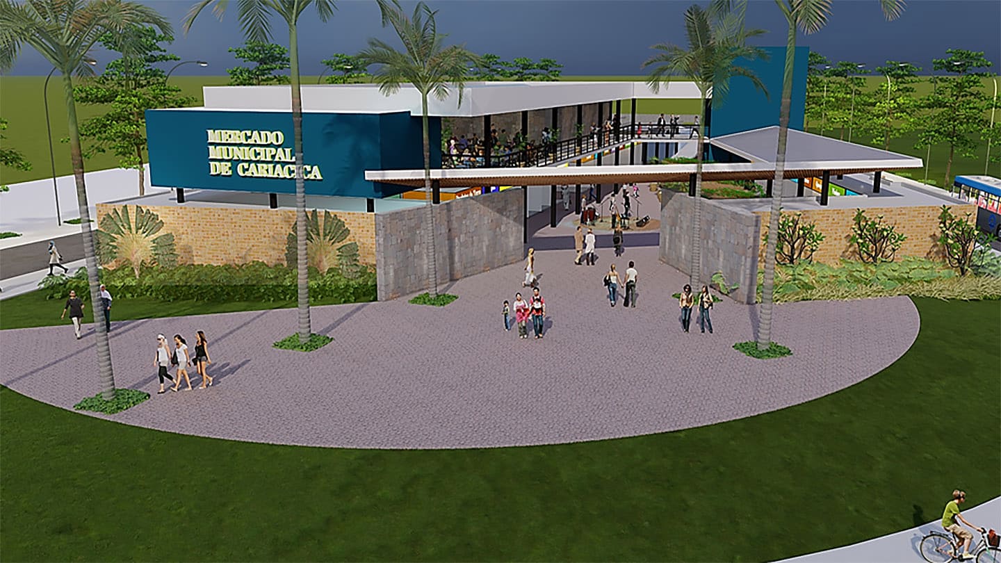 O terreno onde o novo Mercado Municipal de Cariacica está sendo construído tem uma área total de 3.100 metros quadrados e é localizado na Rodovia Governador José Sette, em Itacibá. A estrutura terá três pavimentos, totalizando 3.665 metros quadrados de área construída.