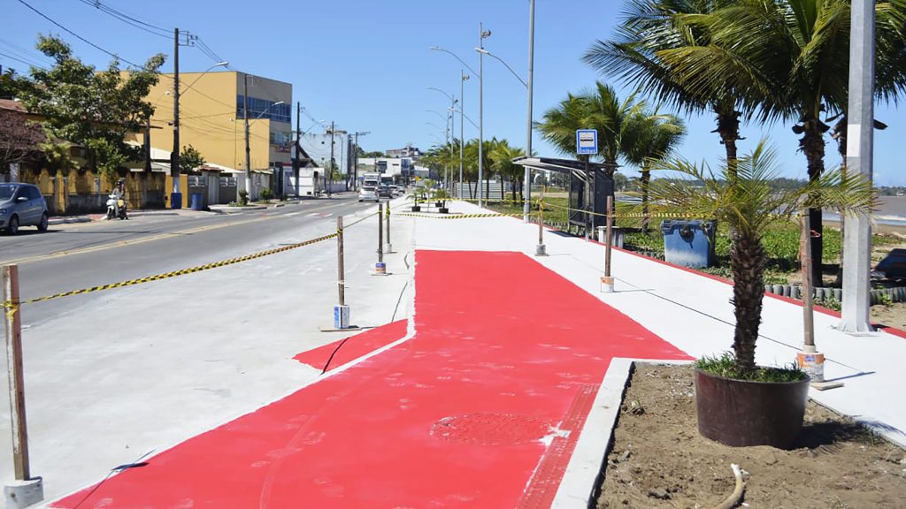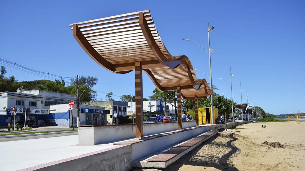 Já no trecho de 300 metros, entre a ponte Cônego Barros e a altura da agência do Banestes, vem sendo realizado os serviços de instalação de um deck de madeira e um pergolado, além da construção dos canteiros, estacionamento e da arquibancada.