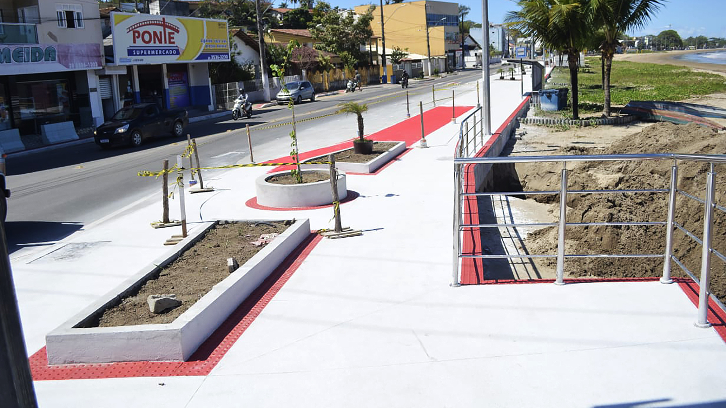 Os trabalhos para revitalização da orla da Praia Central, em Anchieta, no litoral sul do Estado, seguem em andamento. As obras contemplam um trecho de 1.190 metros com reconstrução do calçadão e outro percurso de 300 metros, onde já estão sendo implantadas melhorias na iluminação, instalação de bancos, estação de academia, chuveiros, estacionamento, pontos de ônibus, pergolado e jardinagem.