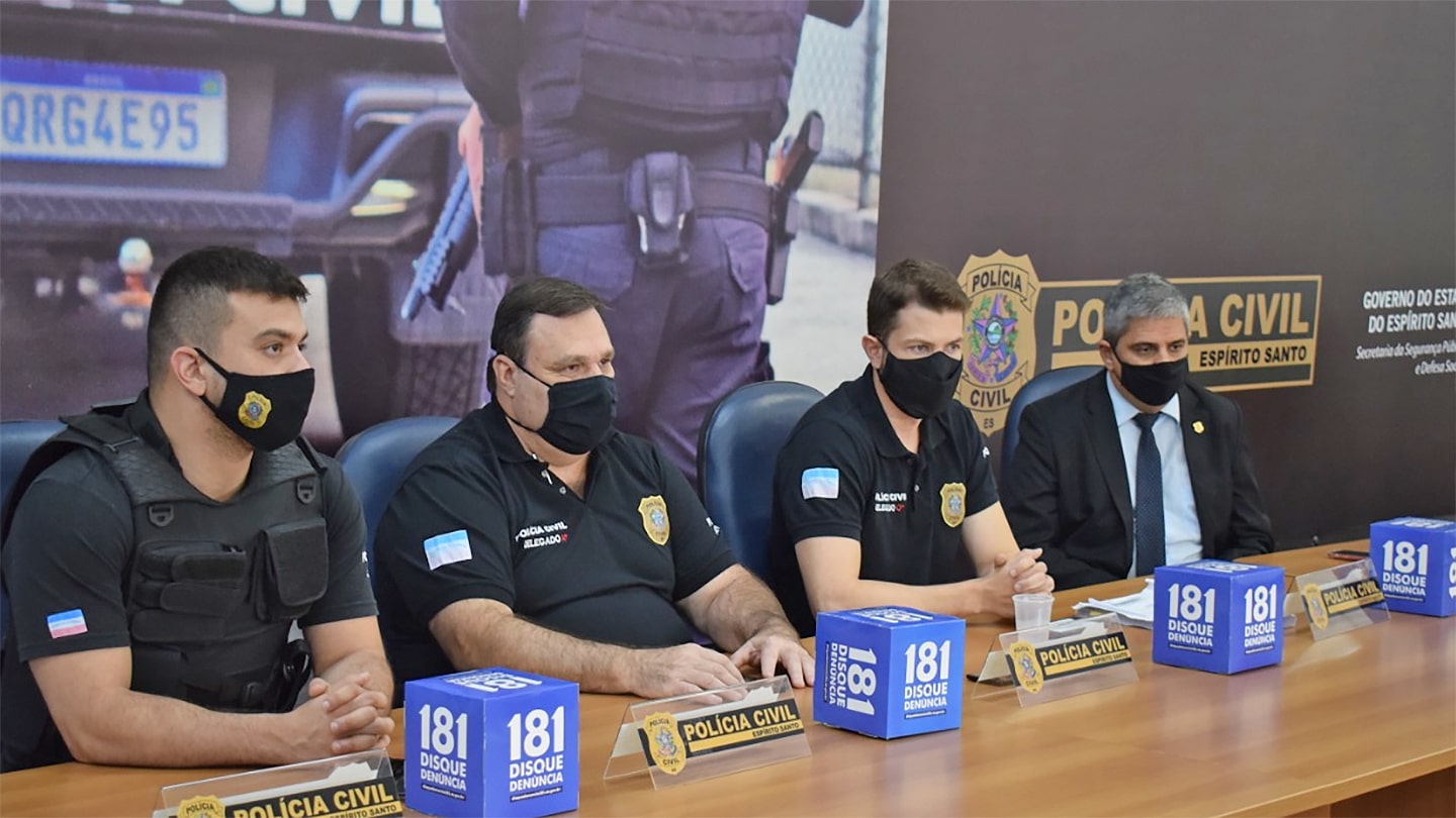 O resultado foi apresentado na manhã desta sexta-feira (16), durante entrevista coletiva realizada na Chefatura de Polícia, em Vitória, e contou com a presença do delegado Diego Aleluia, titular da DPCA; do delegado José Lopes, superintendente de Polícia Especializada (SPE); delegado Diego Bermond, adjunto da DPCA, e do delegado Heli Schimittel, chefe da Divisão Especializada da Região Metropolitana.
