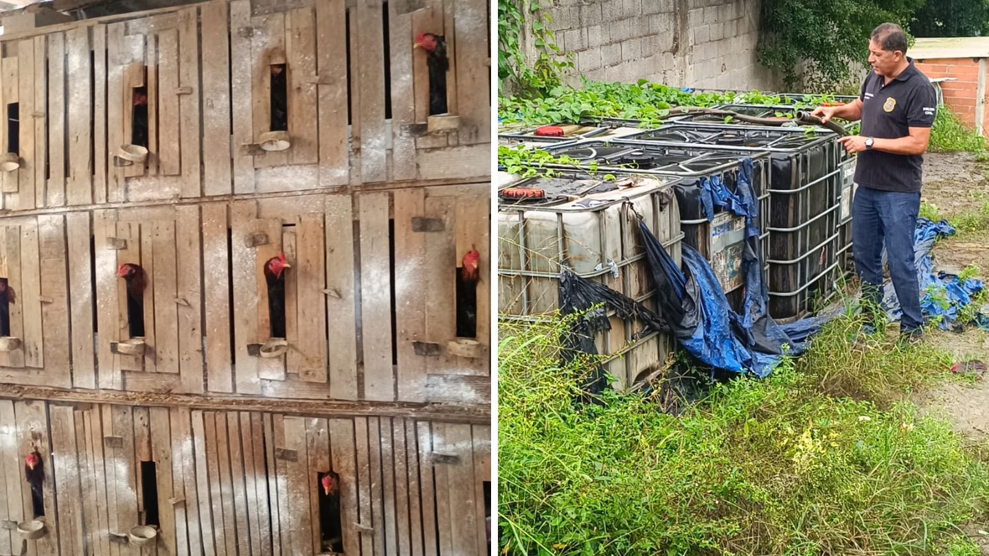 Ao todo, mais de 30 galos foram encontrados engaiolados e sendo criados especificamente para rinhas, prática considerada crime de maus-tratos e infração ambiental. No local, as autoridades identificaram uma estrutura montada para realização das lutas, evidenciando a organização e a reincidência da atividade criminosa. A descoberta reforça a gravidade da situação e a necessidade de ações rigorosas no combate a esse tipo de crueldade contra os animais.