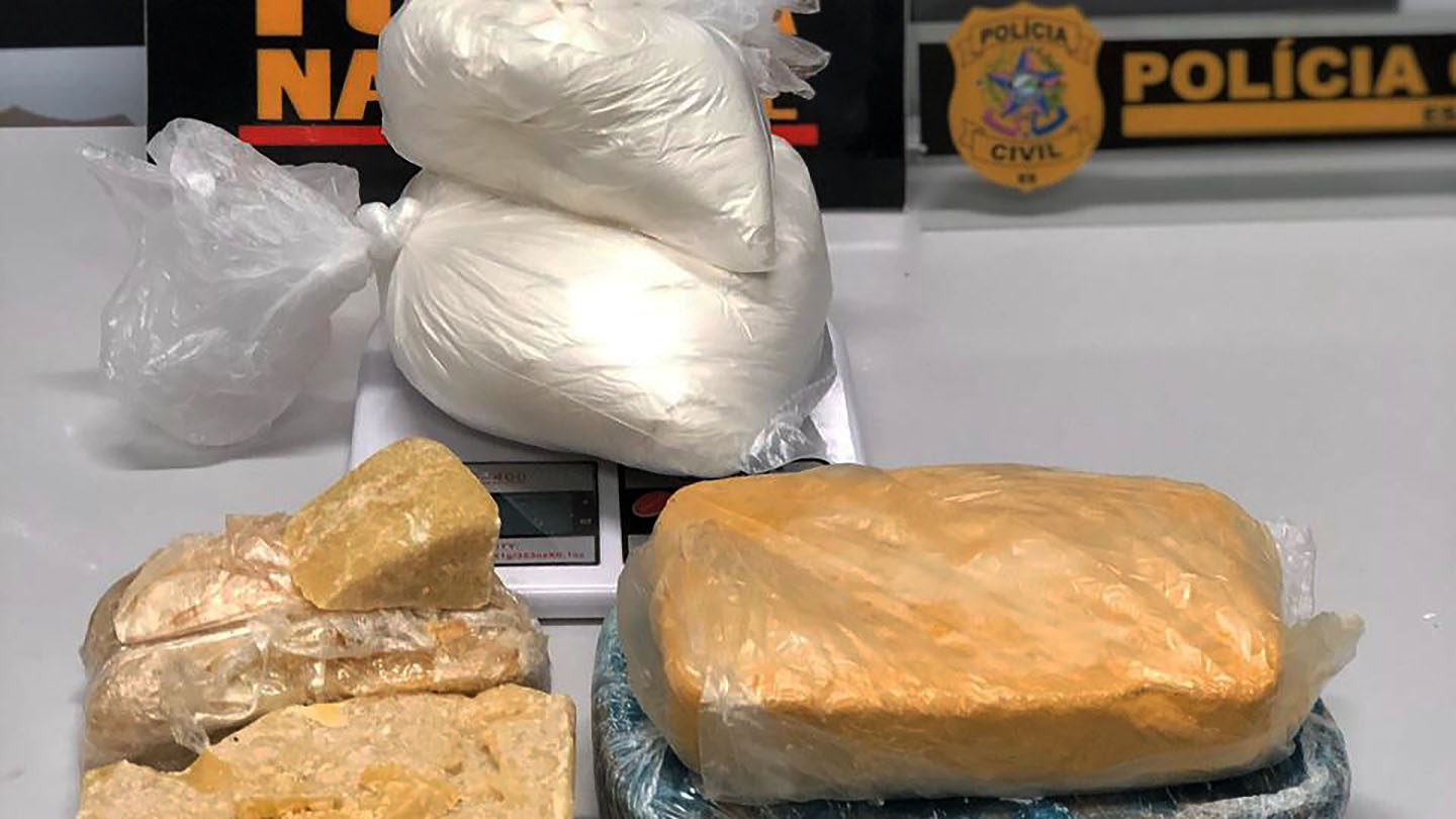 Os policiais encontraram em poder do conduzido: 3kg de crack, avaliados em R$ 75.000,00 e 1,5kg de cocaína avaliada em R$ 22.000,00.