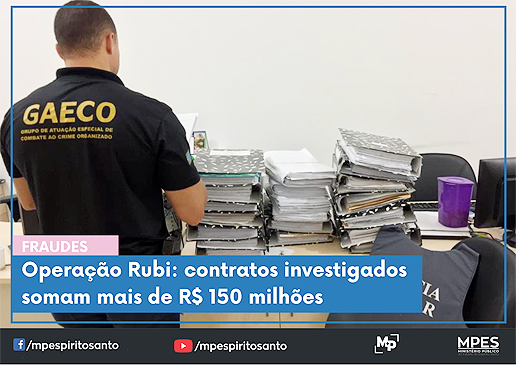O Ministério Público do Estado do Espírito Santo (MPES), por meio da Subprocuradoria-Geral de Justiça Judicial e do Grupo de Atuação Especial de Combate ao Crime Organizado (Gaeco), informa que as apurações iniciais da Operação Rubi apontam que os contratos de limpeza urbana e de transporte público com evidências contundentes de superfaturamento somam mais de R$ 150 milhões, quando analisado o período de 2013 a 2018.