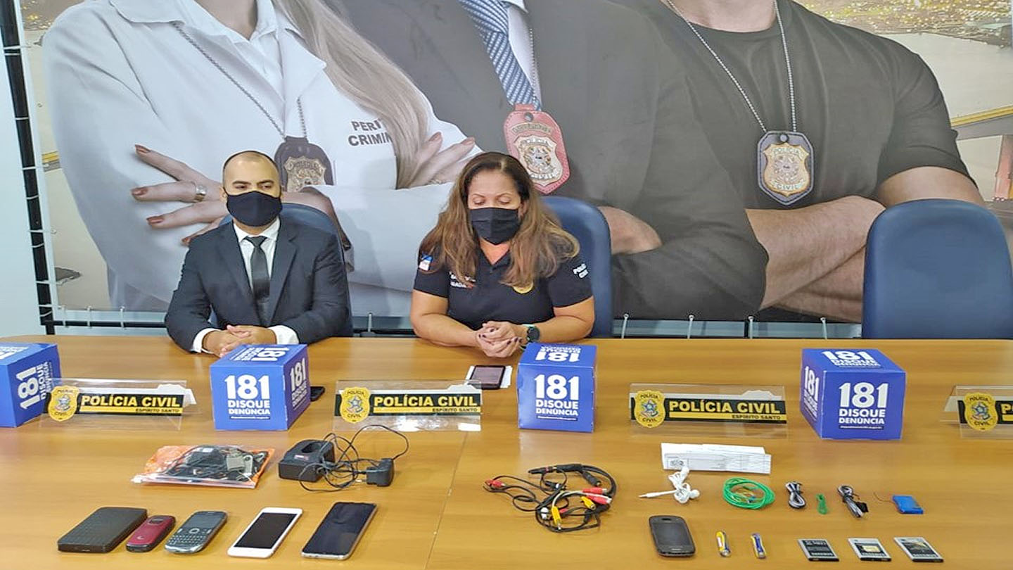 Arquivos digitais que ela guardava no computador e no celular foram periciados e, neles, a Polícia Civil encontrou prints de conversas em um aplicativo de mensagens, entre ela e o servidor público. Além disso, a equipe da Denarc de Guarapari apreendeu na casa do investigado e no armário dele no CDP II telefones celulares, fios elétricos e baterias, que seriam entregues a internos da unidade prisional.