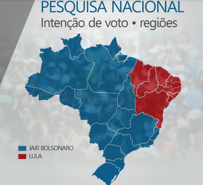 A pesquisa está registrada no Tribunal Superior Eleitoral com o número 04850/2022 e a margem de erro é de dois pontos percentuais para mais ou para menos.