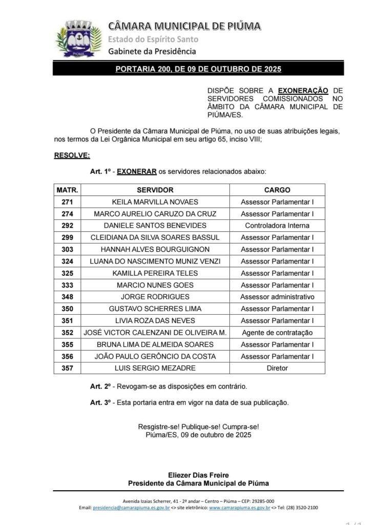 Após a decisão, conforme relatou Ruan, o presidente Eliezer Dias determinou a exoneração dos assessores dos seis vereadores que votaram contra o aumento do repasse, justificando que as demissões ajudariam a reduzir os gastos da Câmara.