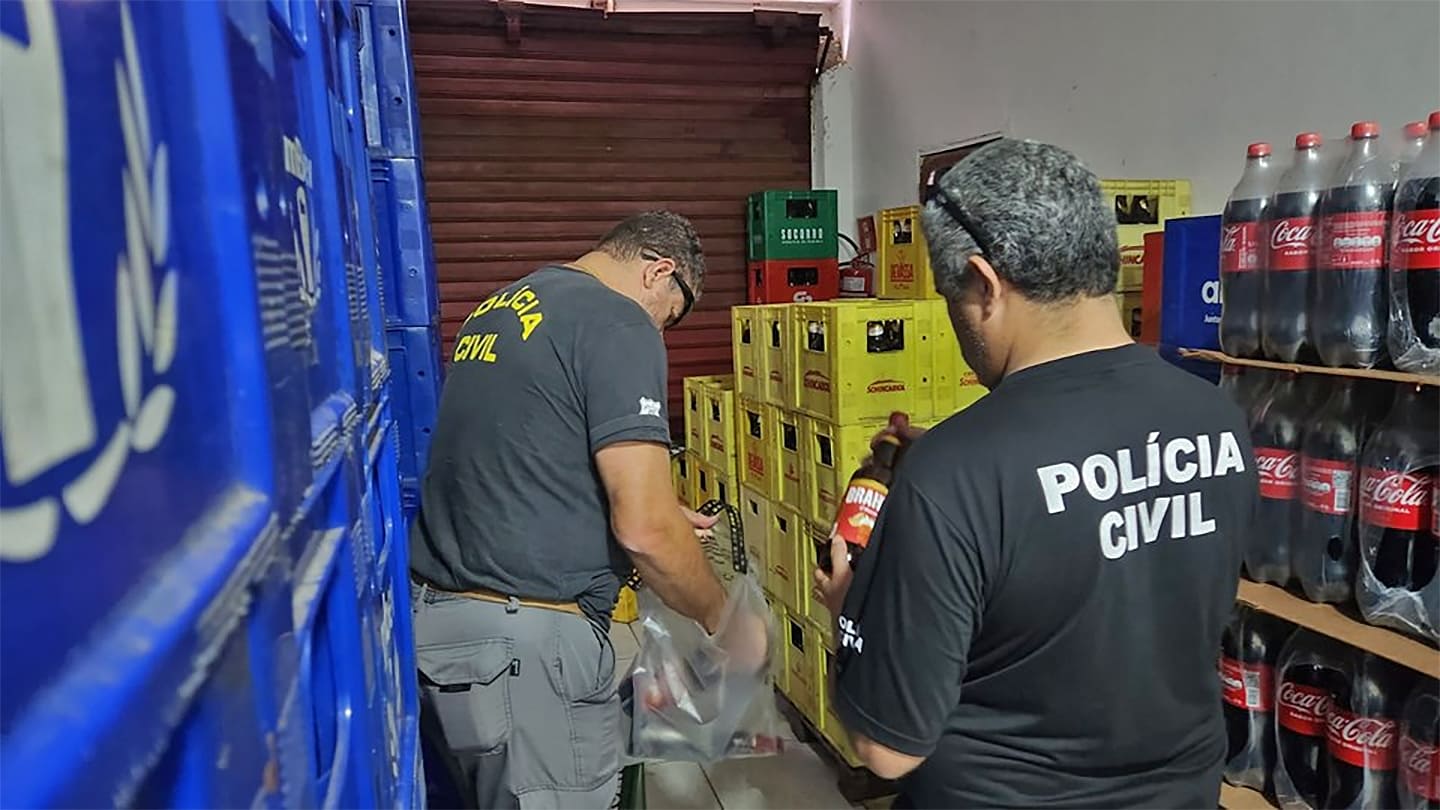 Polícia Civil apreende materiais usados para adulterar bebidas em três municípios do Estado