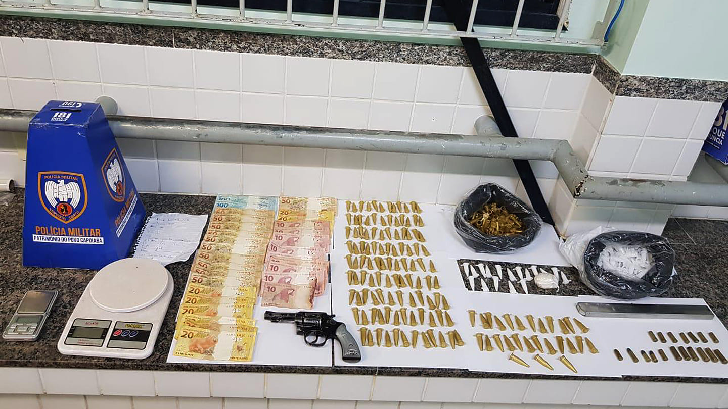 Policiais Militares do 10º Batalhão realizaram a apreensão de entorpecentes, arma de fogo e dinheiro em ações preventivas e repressivas em Guarapari na última quinta-feira (13).