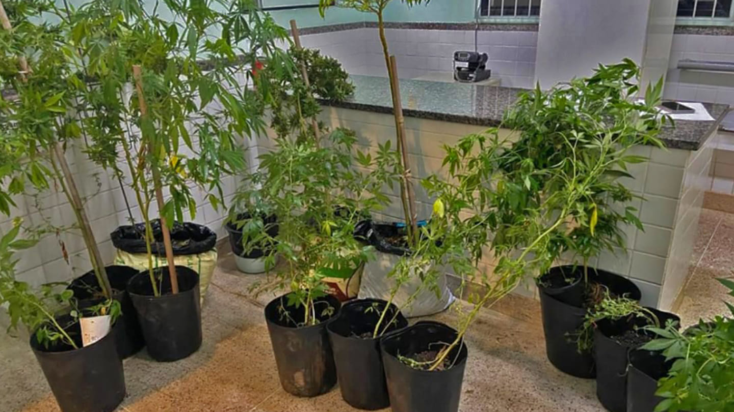 Em outra ocorrência, já no decorrer da noite, equipes da Força Tática se deslocaram até o bairro Nova Guarapari após receberem denúncias sobre o possível cultivo de maconha em uma residência. No imóvel, os militares encontraram 25 pés de cannabis sativa, além de diversos materiais relacionados ao entorpecente, como frascos e potes contendo óleo de canabidiol, flores de maconha, um tablete e pedaços da droga, além de uma balança de precisão.