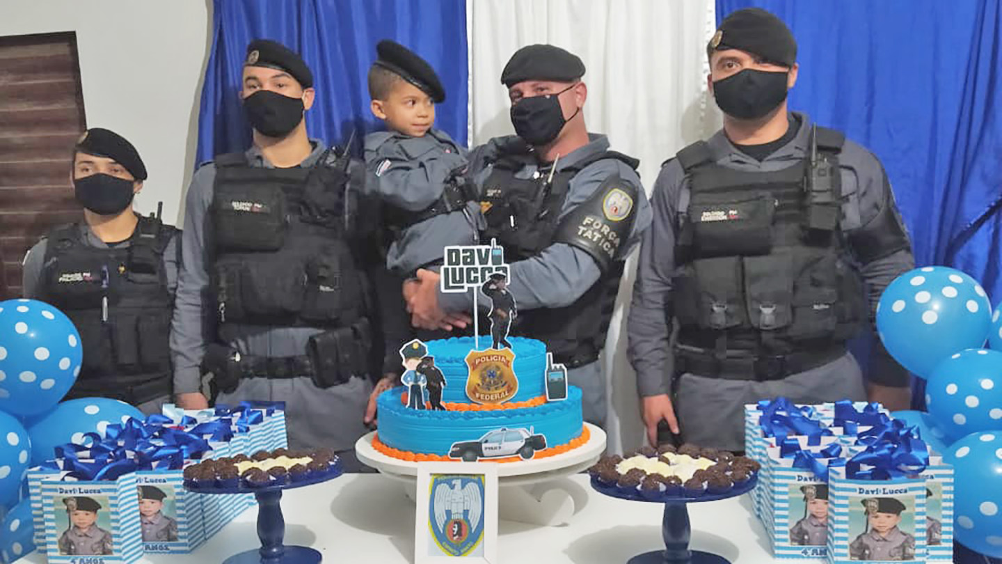 No último sábado (30), policiais militares da Força Tática do 10º Batalhão realizaram o sonho do pequeno Davi, e compareceram ao seu aniversário de 4 anos.