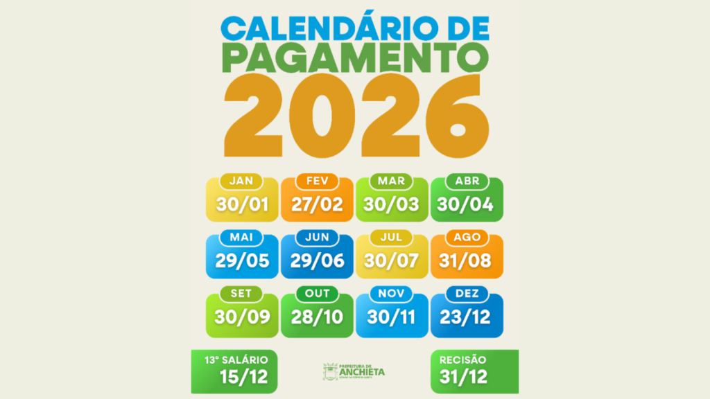 A Prefeitura de Anchieta divulgou o calendário de pagamento dos salários dos servidores municipais referente ao ano de 2026. A medida garante previsibilidade financeira aos trabalhadores e reforça o compromisso da administração municipal com a pontualidade e a transparência na gestão dos recursos públicos.