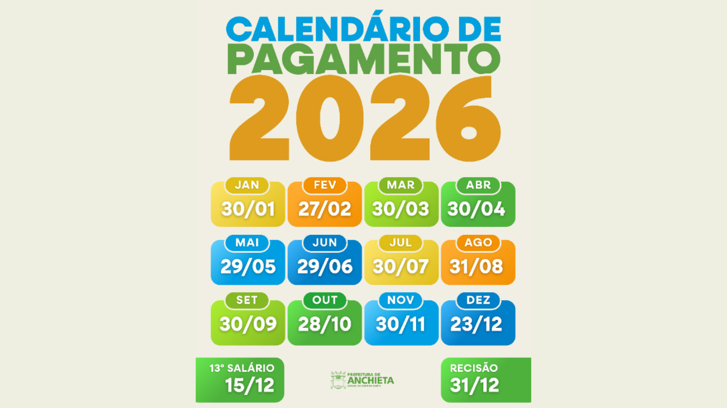 Prefeitura de Anchieta divulga calendário de pagamento dos salários de 2026