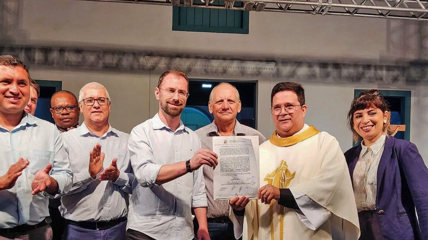 A solenidade de assinatura ocorreu após a missa solene em honra ao padroeiro do Brasil, ocorrida no dia 09. Assinaram o documento o prefeito de Anchieta, Fabrício Petri; o reitor do Santuário, padre Álvaro Negromonte, Sj; o vice-prefeito, Carlos Waldir de Souza; a gerente de Cultura e Patrimônio Histórico, Maria Fernanda de Barros, além dos vereadores presentes ao evento.