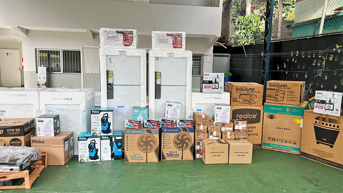 Foram entregues máquinas de lavar, fogões, geladeiras, ventiladores, micro-ondas, entre outros itens, que vão melhorar significativamente a infraestrutura e as condições de trabalho nos abrigos, além de proporcionar mais conforto e qualidade de vida às pessoas acolhidas.