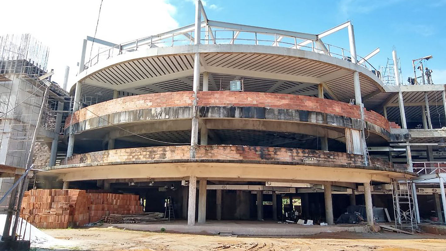 As obras encontram-se na fase de execução dos dutos e tubos do sistema de climatização. Também já está sendo realizada a montagem da estrutura metálica da sala de espera.