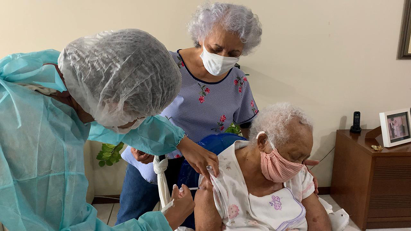Maria Nazaré da Silva Oliveira, única filha da Dona Arminda, acompanhou tudo de pertinho e falou sobre a alegria em ver a mãe sendo vacinada. “Eu só tenho a agradecer pelo ótimo trabalho que a prefeitura está realizando. Não temos como levar a mamãe para vacinar, então receber a equipe aqui em casa, com todo o cuidado, é muito gratificante. A gente sabe o quanto esse momento é importante, estou muito feliz”, disse a filha.