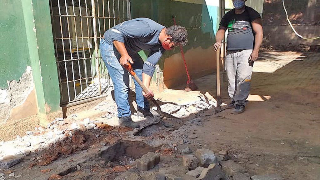 E desde ontem, as mesmas ações começaram a ser realizadas na tão sonhada Escola Manoel dos Santos Pedroza, no bairro Niterói, que é uma reivindicação antiga dos moradores da comunidade. A demolição do ginásio, anexo a escola, também já está sendo providenciada.