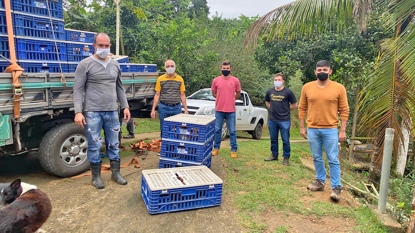 Outra novidade, é que a comunidade quilombola de Alto Iguape também foi beneficiada com a entrega de 70 aves. O objetivo é incentivar a produção de subsistência da comunidade através da prática do galinheiro comunitário.