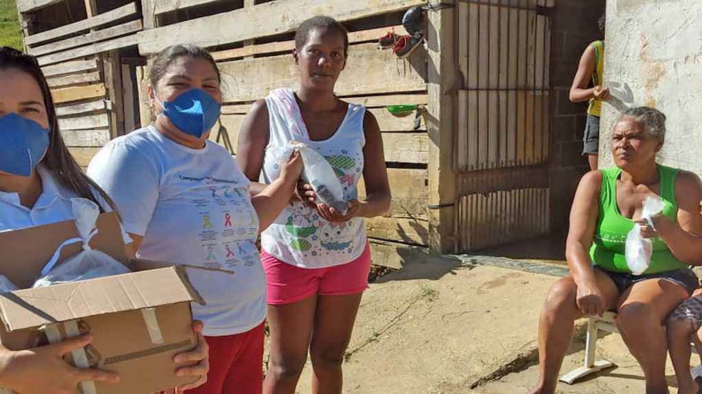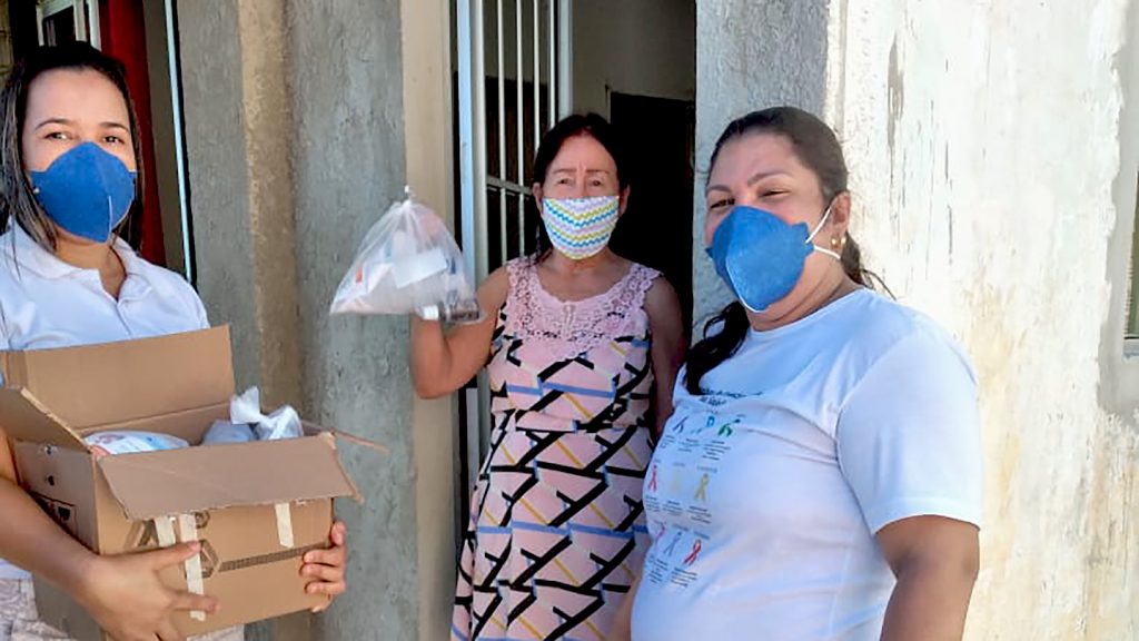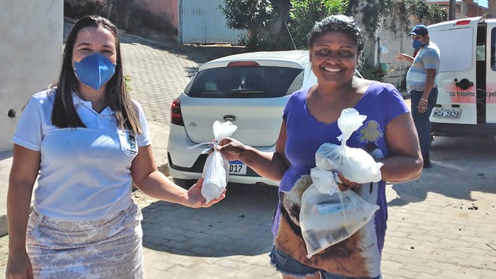 Através da Atenção Básica, que indicam as famílias mais carentes, e com apoio dos agentes comunitários de saúde e enfermeiros do município, as famílias estão recebendo um kit contendo 1 frasco de álcool em gel com 500ml + 02 frascos de hipoclorito a 1% + 01 máscara reutilizável para cada componente da família.