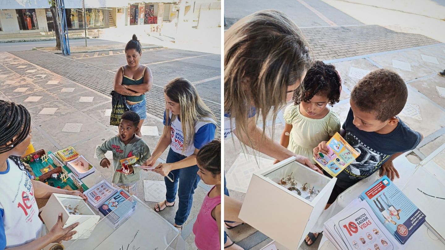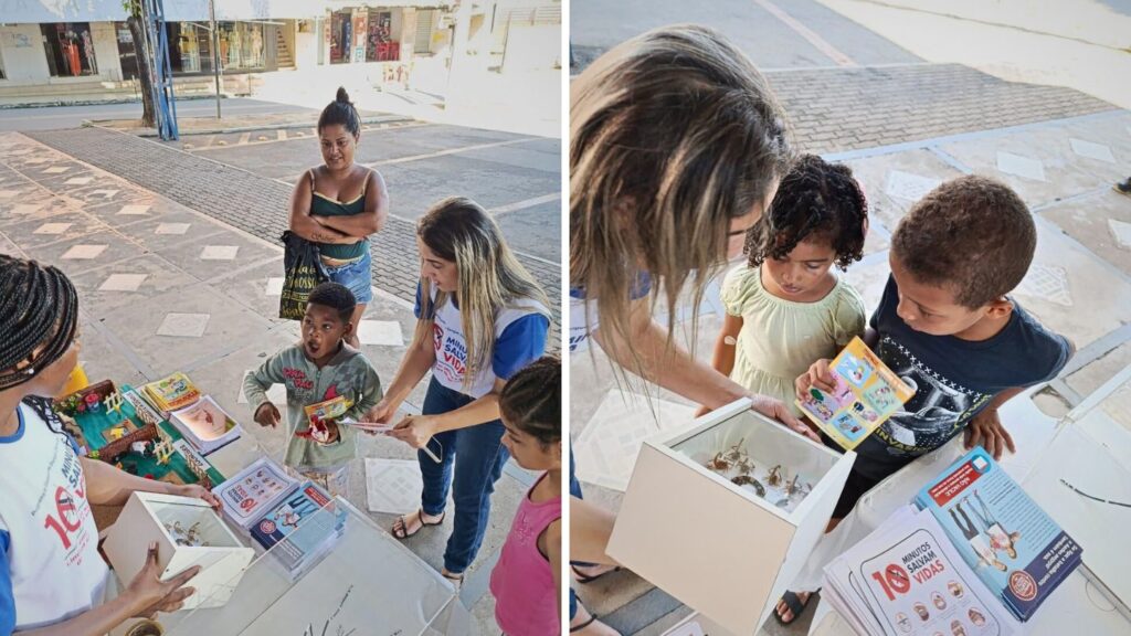 Além das visitas às residências, a mobilização contou com diversas ações educativas e de conscientização. Foram realizadas orientações e panfletagens na Feira Municipal e no comércio da Sede, abordagem e distribuição de material informativo sobre arboviroses para passageiros na rodoviária, borrifação nos ônibus e visitas em escolas, com atividades voltadas para a conscientização de crianças e adolescentes.
