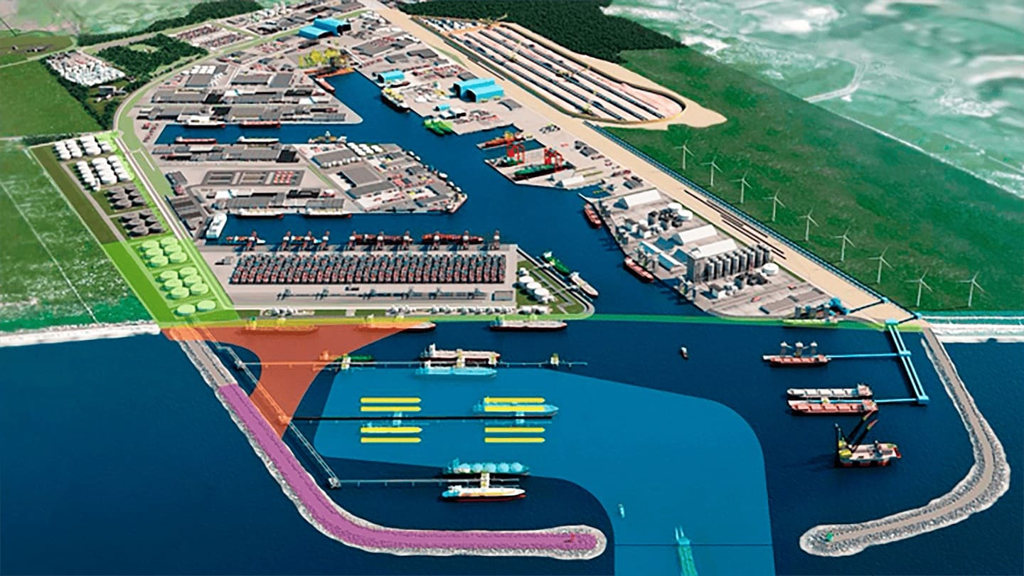 A primeira fase em execução contempla a construção do terminal de granéis líquidos para operar transbordo de petróleo, do quebra-mar sul e do canal de acesso da infraestrutura portuária.