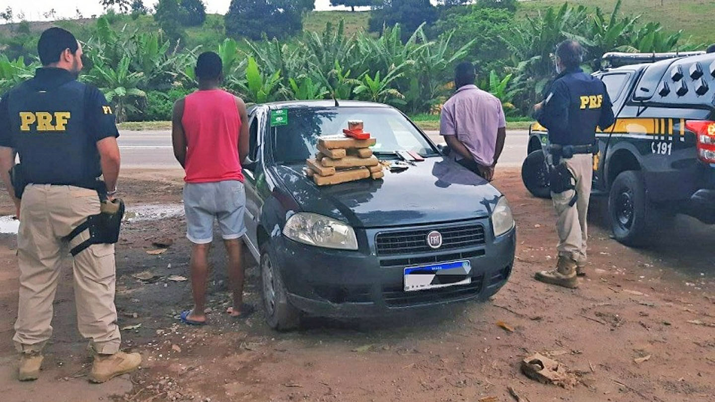 Ao revistar o automóvel foi encontrado, no porta malas, uma caixa contendo 12 tabletes maconha, totalizando 10 quilos. Também foram encontrados R$ 429 em posse dos mesmos.