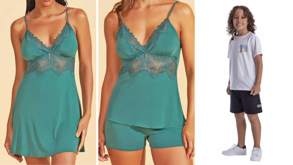 E tem oferta de cair o queixo: a Loja Mayri Lingerie vende camisola Recco de R$ 205 por R$ 102,50 e short da mesma marca de R$ 246 por R$ 123. Na Conceito Teen, camisetas saem por R$ 49,99 e bermudas de R$ 89,90 por R$ 59,99. Conjuntos infantis que custavam R$ 215 e R$ 183 estarão por R$ 99,99.