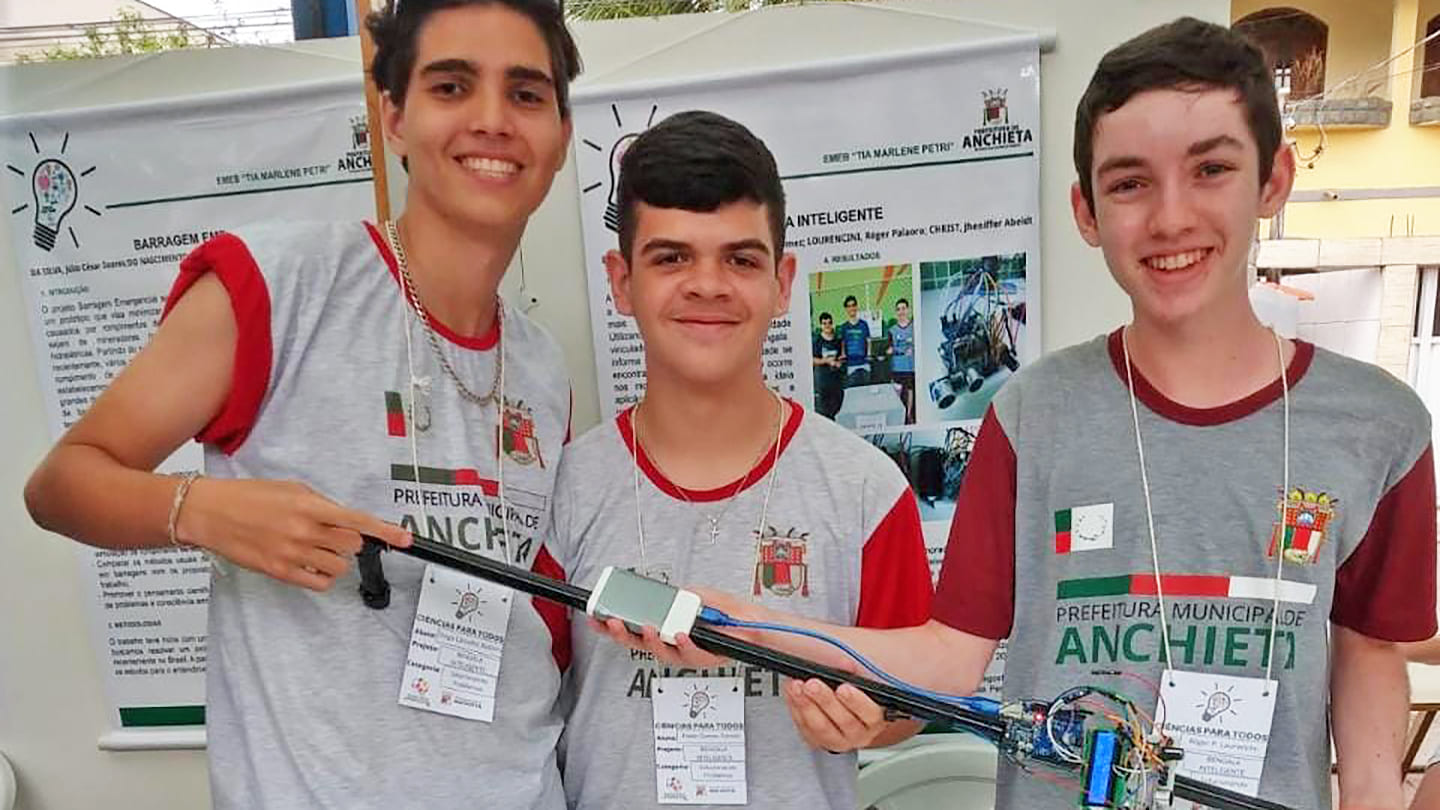Alunos da escola municipal Marlene Petri, localizada no distrito de Alto Pongal, no interior de Anchieta, foram premiados em três feiras de ciências. Os estudantes do 9º ano do ensino fundamental, Diego Carvalho Boldrini, Pablo Gomes Foresti e Róger Palaoro Lourencini, criaram uma ‘Bengala Inteligente’, projeto que foi apresentado no evento Ciências para Todos, promovido pela Secretaria de Educação de Anchieta.