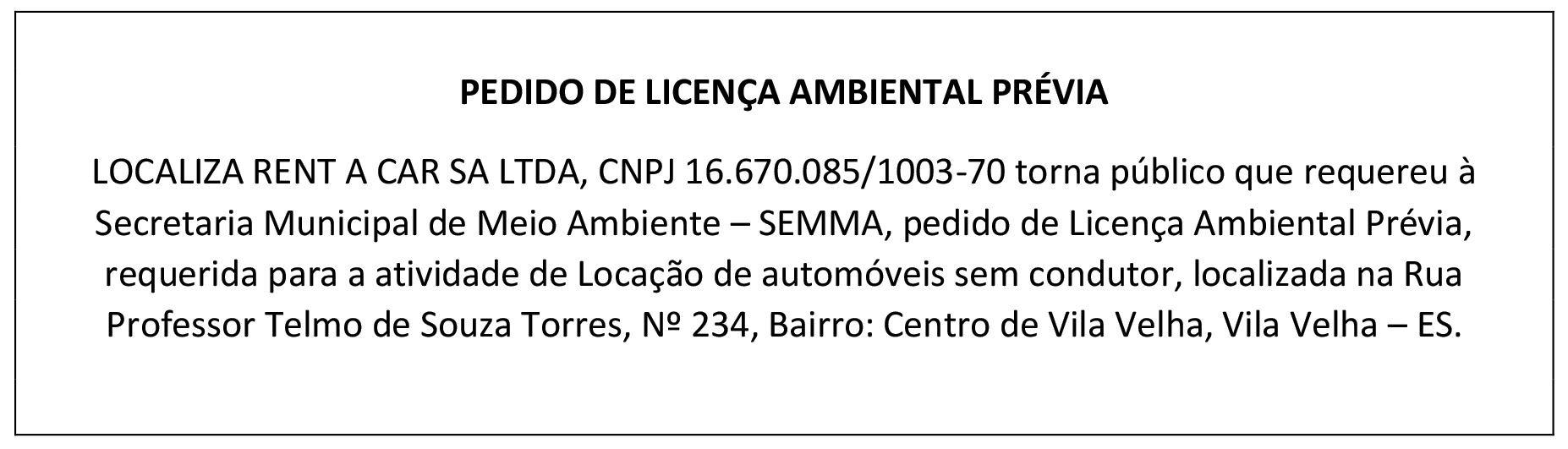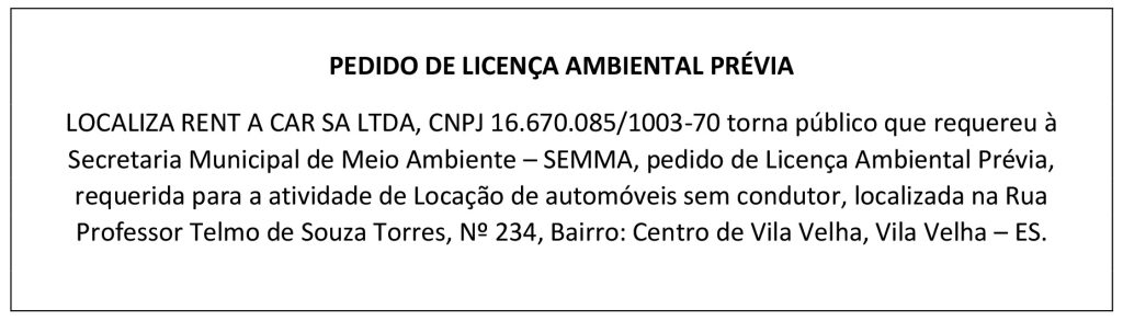 PEDIDO DE LICENÇA AMBIENTAL PRÉVIA