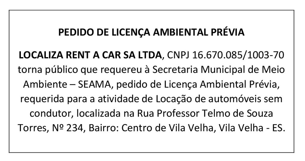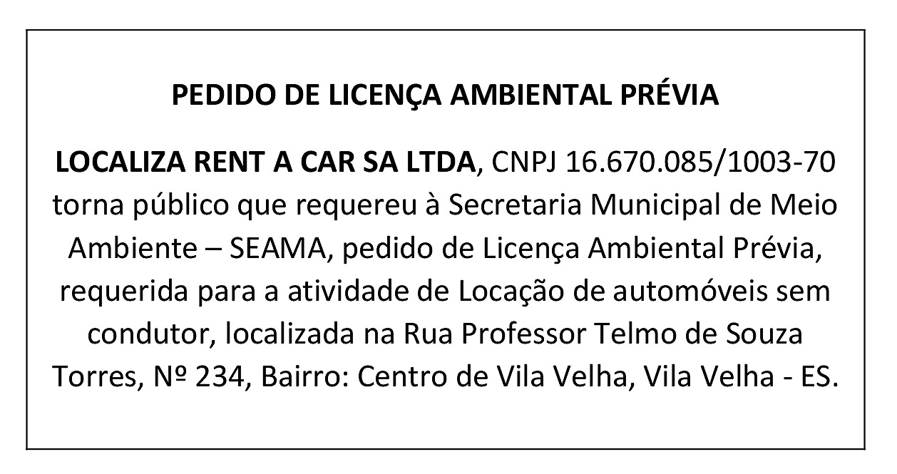 PEDIDO DE LICENÇA AMBIENTAL PRÉVIA