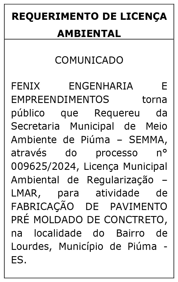 REQUERIMENTO DE LICENÇA AMBIENTAL