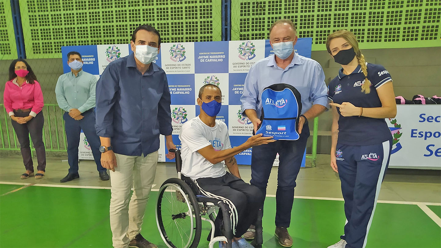 O Governo do Estado, por meio da Secretaria de Esportes e Lazer (Sesport), realizou, nesta terça-feira (13), a entrega dos kits esportivos para os atletas e paratletas de alto rendimento contemplados pelo programa Bolsa Atleta. A solenidade no CT Jayme Navarro de Carvalho, em Vitória, teve a presença do governador Renato Casagrande e do secretário de Estado, Júnior Abreu, além de alguns dos esportistas contemplados. O evento seguiu todos os protocolos sanitários exigidos pelos órgãos de Saúde para prevenção do novo Coronavírus (Covid-19).
