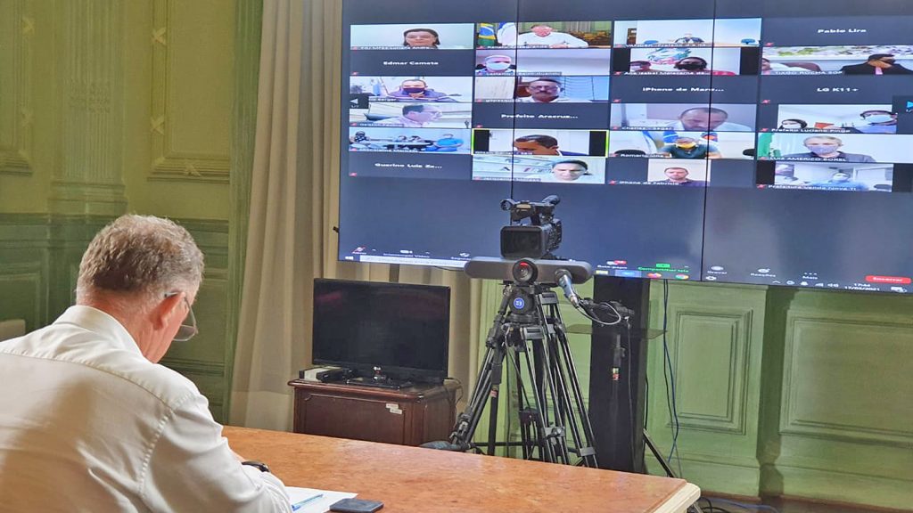 A reunião, de forma virtual, contou com a presença da vice-governadora, Jacqueline Moraes; dos secretários de Estado que integram a Sala de Situação; da procuradora-geral de Justiça, Dra. Luciana Andrade; do presidente do Tribunal de Contas, Rodrigo Chamoun; e de 63 prefeitos dos municípios capixabas.