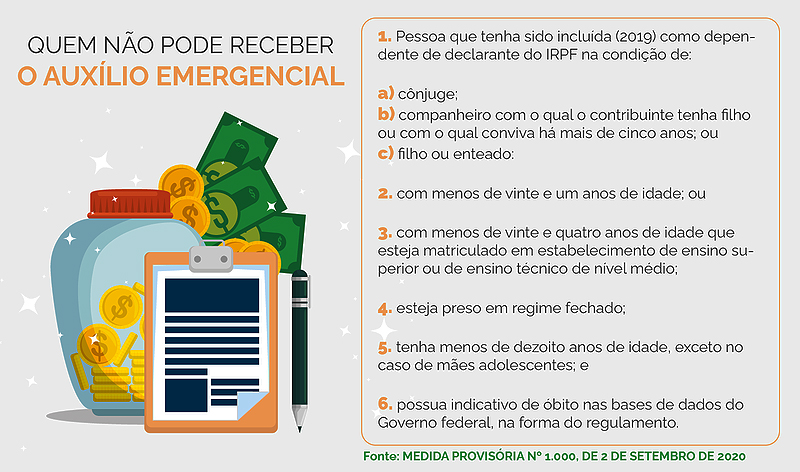 Além disso, não terão direito a receber o benefício, pessoas que em 2019 tiveram rendimentos tributáveis em valor superior a R$ 28.559,70; que tinha, em 31 de dezembro de 2019, a posse ou a propriedade de bens ou direitos, incluída a terra nua, de valor total superior a R$ 300.000,00; entre outros requisitos estabelecidos pela medida provisória.